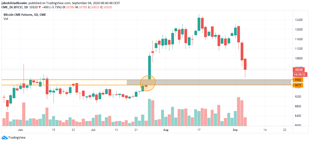 Oczy wielu graczy są teraz zwrócone na lukę w CME, która powstała po koniec lipca 2020. Czy Bitcoin zamknie lukę na 9 650-9 900 USD i odbije się od niej?