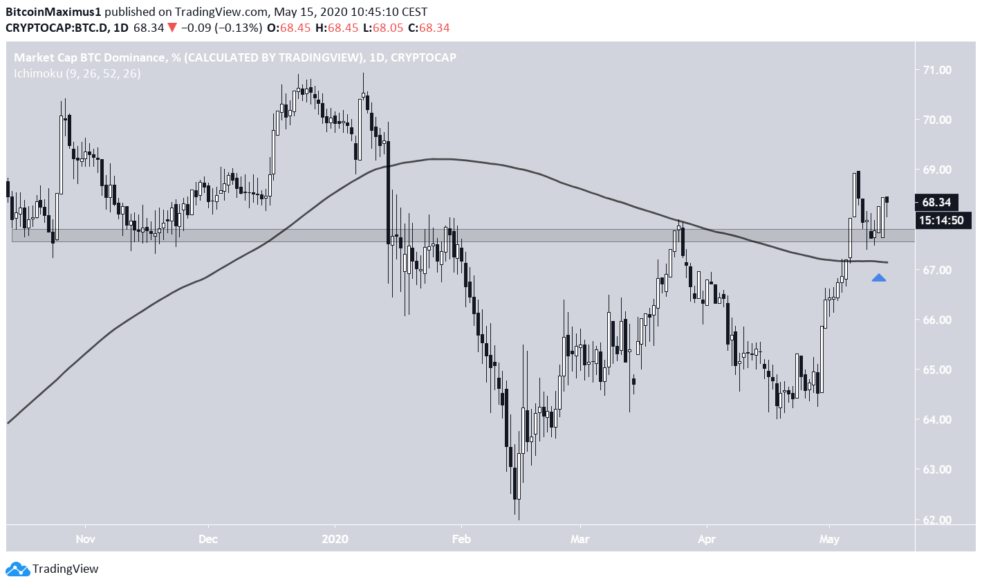 Wskaźnik dominacji Bitcoin (BTCD) przekroczył ważny obszar oporu i potwierdził go jako wsparcie. Tak długo, jak znajduje się powyżej, jego ruch cenowy jest uważany za byczy.