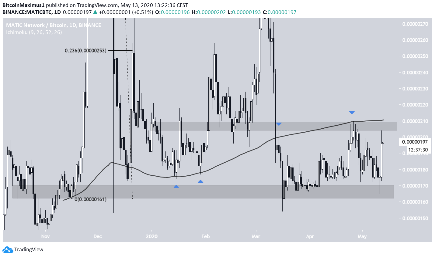 Po gwałtownym spadku 12 marca cena MATIC znalazła wsparcie na poziomie 170 satów, poziom wsparcia, który obowiązuje od grudnia 2019 r.