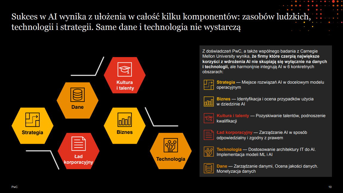 Jeden z głównych wniosków, jaki nasuwa się po przeanalizowaniu raportu, to fakt, że samo istnienie AI nie zrewolucjonizuje danej działalności. Potrzebne są zasoby ludzkie, które dzięki konkretnym strategiom i planom działania usprawnią funkcjonowanie firm przy pomocy najnowszych technologii.