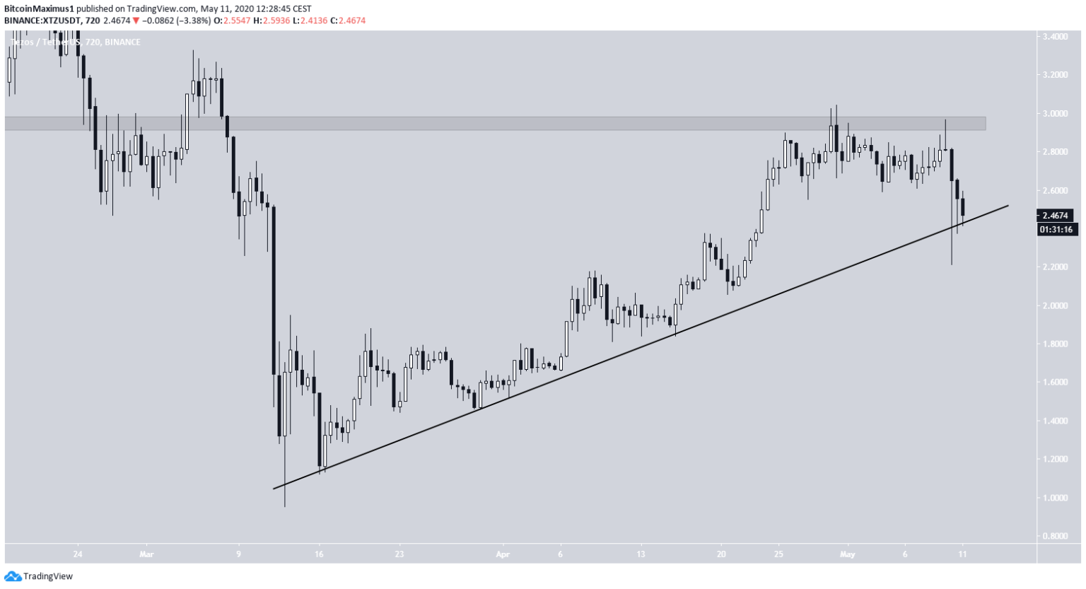 W parze XTZ/USD cena również spadła aż do rosnącej linii wsparcia, która obowiązuje od 13 marca.