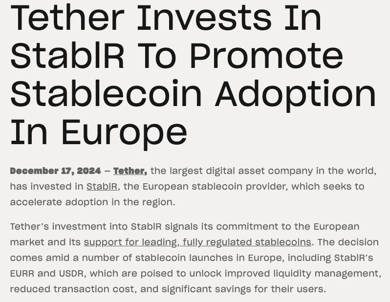 W odpowiedzi firma wsparła nowy projekt – StablR, który ma być zgodny z unijnymi przepisami. Jednak obecnie nie stanowi on jeszcze realnej alternatywy. Ponadto, w przypadku dalszego ograniczania dostępu do USDT, jego rola w handlu i DeFi może szybko maleć.