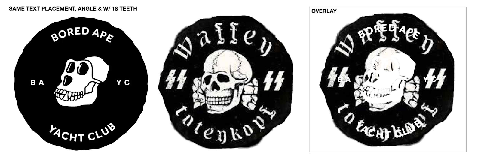 Według Rusnacka, popularne zdjęcia BAYC są pełne rasistowskich karykatur ludzi czarnoskórych i Azjatów. YouTuber posunął się nawet do porównania języka używanego przez Yuga Labs i BAYC do języka nazistów. Przykładem może być porównanie logo BAYC z nazistowskim symbolem Totenkopf, używanym przez SS w Dywizji Pancernej podczas II wojny światowej.