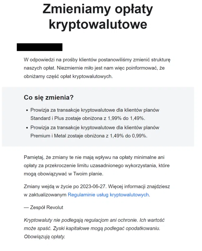 W ostatnich miesiącach Revolut wprowadzał wiele zmian mających na celu usprawnienie i obniżenie kosztów dla swoich klientów. W ostatnim czasie brytyjska firma fintechowa postanowiła równeiż dokonać zmiany w polityce opłat związanych z transakcjami kryptowalutowymi.