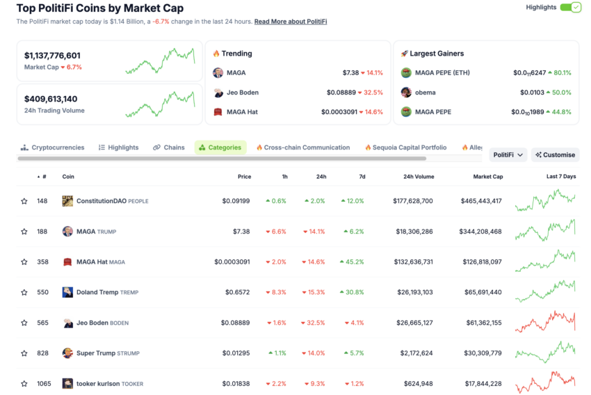 Rynek zareagował drastyczną wyprzedażą memecoinów o tematyce politycznej, czyli z sektora PolitiFi.