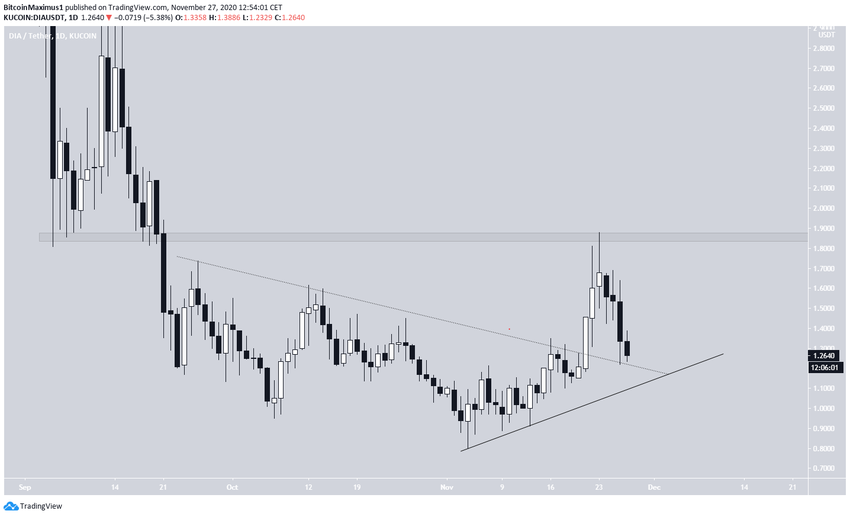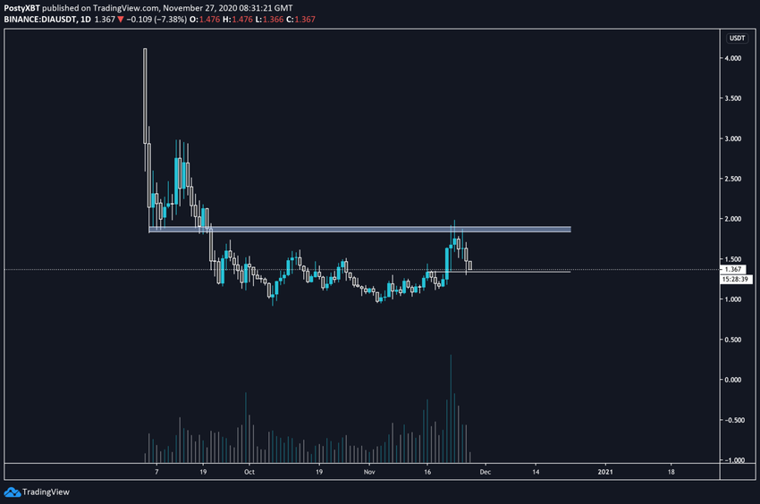 Ceny zarówno DIA (DIA), jak i Polkadot (DOT) odchyliły się powyżej ważnych poziomów oporu, ale od tego czasu spadły z powrotem poniżej nich.