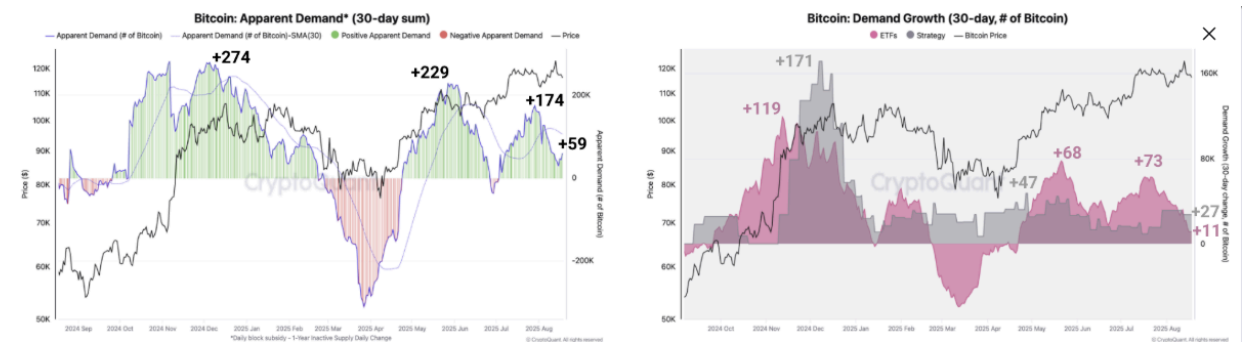 Tygodniowy raport CryptoQuant w środę podkreślił, że spowolnienie popytu i realizacja zysków to kluczowe czynniki korekty BTC.