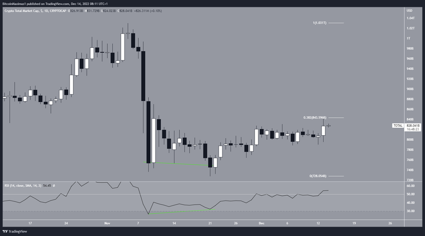 Całkowita kapitalizacja rynku kryptowalut (TOTALCAP) w większości przypadków rośnie od 21 listopada. Bycza dywergencja w RSI poprzedziła ruch w górę.