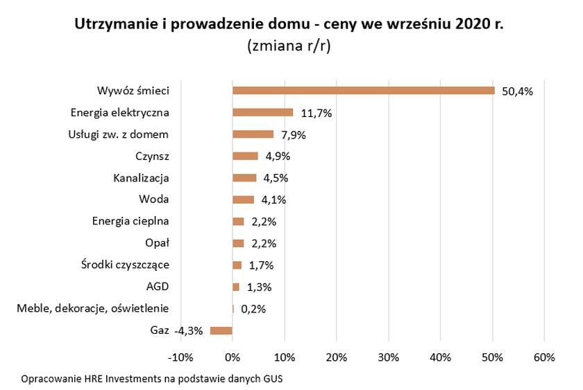 Z kolei raport stworzony przez Bartosza Turka z HRE Investments wskazuje, że liderem wśród podwyżek okazały się usługi wywozu śmieci. Podrożały one o rekordowe 50% w skali roku. Polska wyróżnia się tu na tle innych krajów europejskich, gdzie średnia wzrostów mieści się w przedziale 6-7% w skali roku.