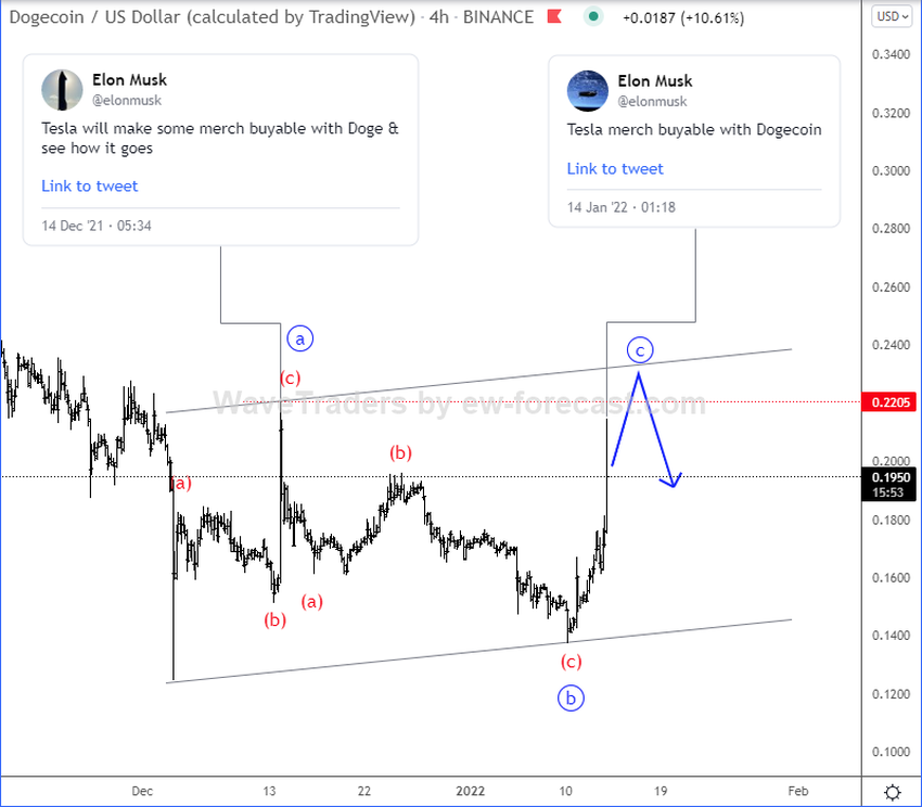 Analityk techniczny @ewforecast opublikował na Twitterze wykres DOGE, stwierdzając, że prawdopodobnie zakończył on swoją korekcyjną fazę handlu.