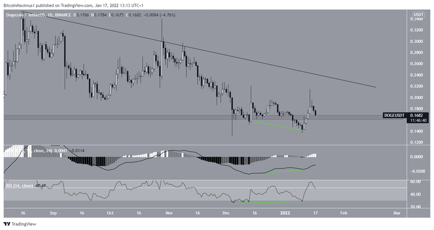 Dogecoin był notowany powyżej horyzontalnego obszaru wsparcia na 0,165 USD od początku maja. W dniu 5 stycznia wydawało się, że DOGE załamał się z tego poziomu po raz pierwszy od 257 dni.