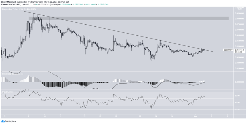 Jeśli nastąpi wybicie, to oczekuje się, że DOGE przesunie się w kierunku obszaru oporu z ATH na poziomie 0,08 USD.
