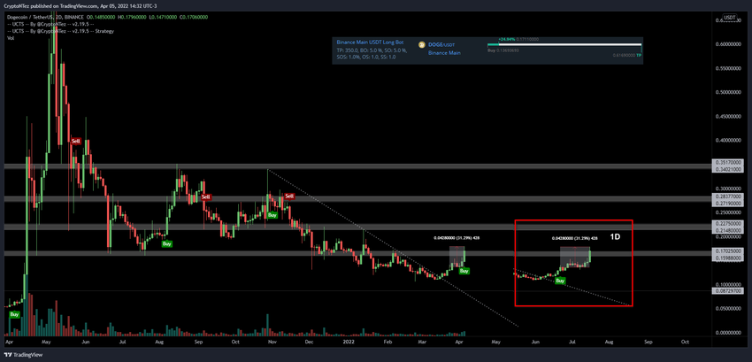 Jeśli scenariusz ten jest prawidłowy, oznaczałoby to, że długoterminowa korekta dla Dogecoin zakończyła się, a cena rozpoczęła znaczny ruch w górę.