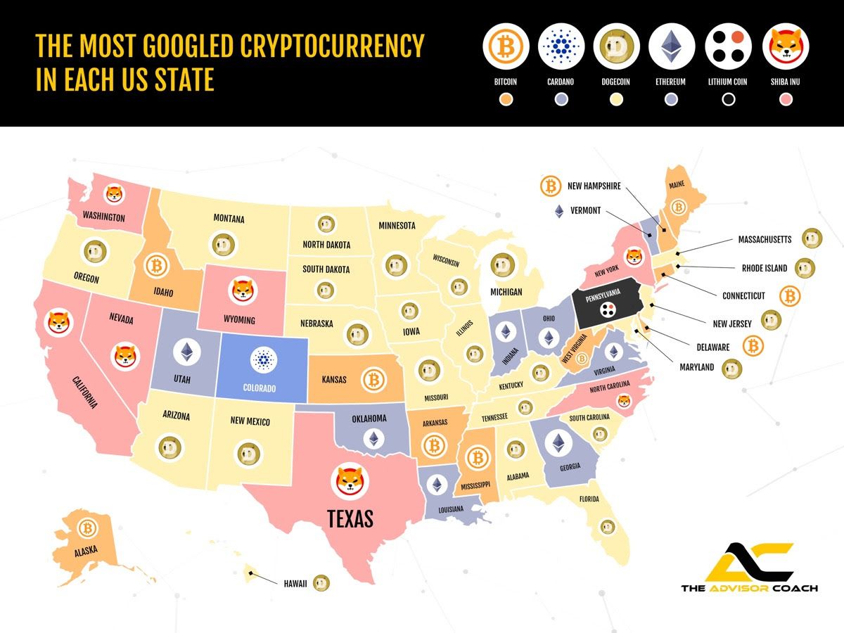 Według badania przeprowadzonego przez The Advisor Coach, Dogecoin znalazł się na szczycie wyszukiwań w 23 z 50 stanów USA. Jest to bardzo imponująca statystyką jak na kryptowalutę, która miała być tylko żartem i nabijać się z ludzi, którzy lata temu zbyt poważnie traktowali Bitcoina.