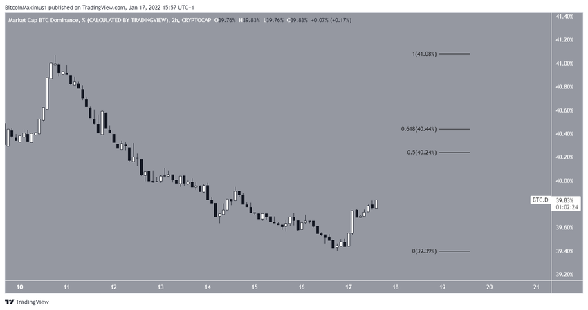 Ponieważ BTCD wzrasta w krótkim terminie, najbardziej prawdopodobnym scenariuszem byłby ruch w górę w kierunku poziomów oporu 0,5-0,618 zniesienia Fib przy 40,2-40,4% przed kolejnym spadkiem w kierunku najniższego poziomu wszech czasów – 35,5%.