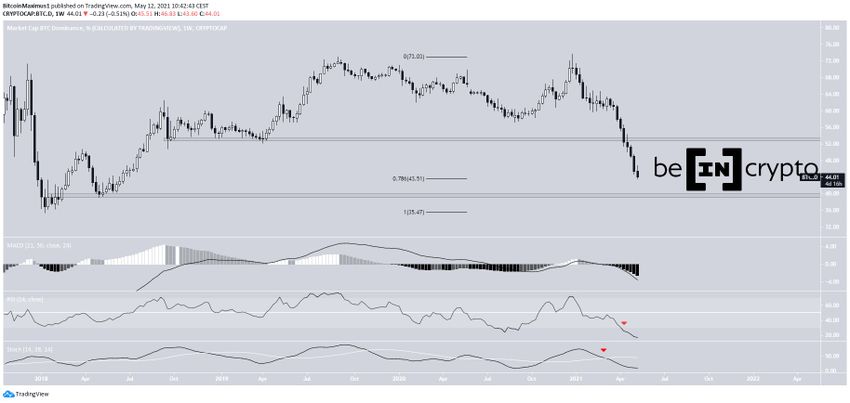 Wskaźnik dominacji Bitcoina (BTCD) spadł poniżej wielu długoterminowych poziomów wsparcia, osiągając najniższą wartość od 2018 roku.