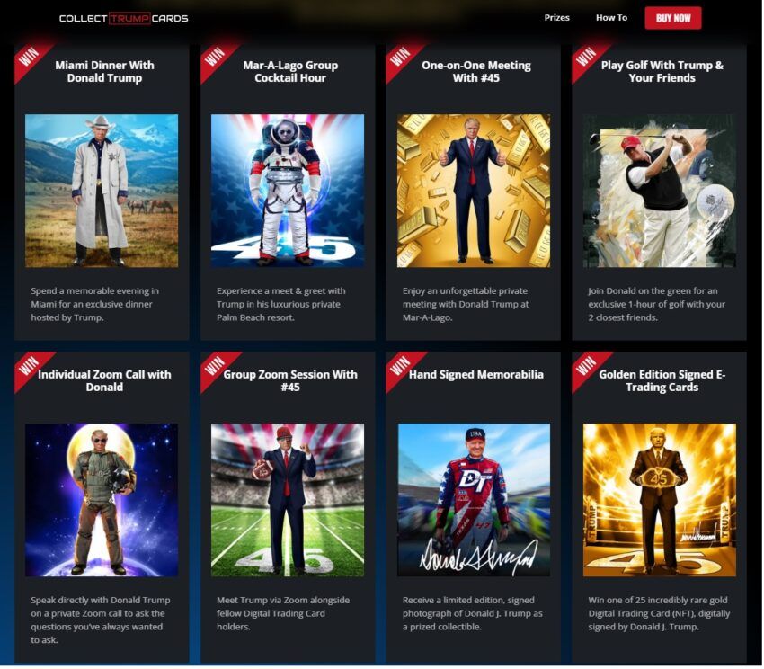 Ponadto strona internetowa stwierdza, że w tej początkowej serii powstało tylko 45 000 Trump Digital Trading Cards. “44 000 z nich zostanie udostępnionych do sprzedaży”, bez wzmianki o 1.000 niezaliczonych NFT.