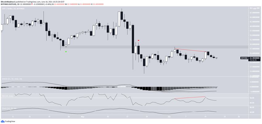 Polkadot (DOT) rośnie od dnia 23 maja i jest notowany wewnątrz trójkąta symetrycznego. Ankr (ANKR) i Reef Finance (REEF) są notowane wewnątrz równoległych kanałów zniżkujących.