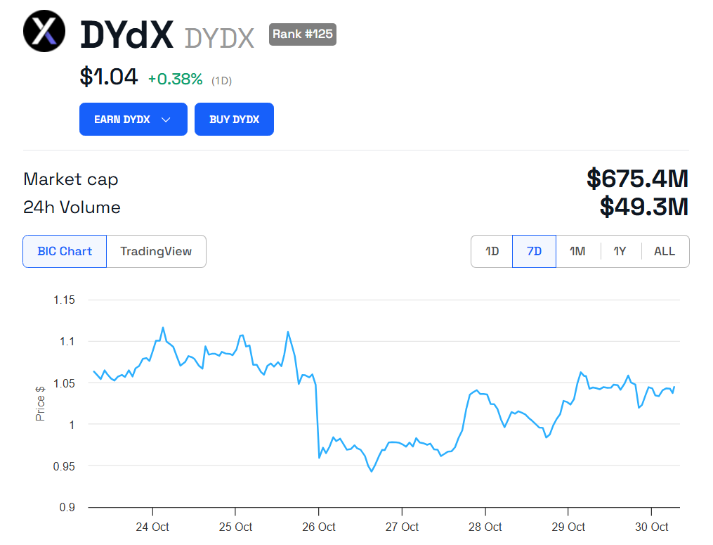 Według oficjalnej strony internetowej, dYdX zatrudnia około 50 osób i obecnie rekrutuje na kilka stanowisk inżynieryjnych i projektowych. To ogłoszenie nie wpłynęło negatywnie na cenę dYdX, która wciąż jest powyżej 1 USD, co oznacza wzrost o 8% od początku tygodnia. Jednak cena pozostaje 96% poniżej swojego rekordu wszech czasów (ATH).