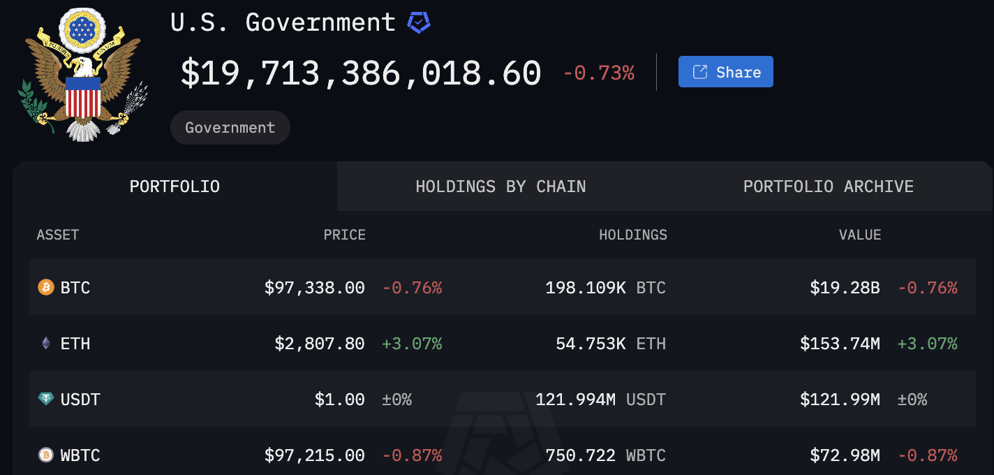 Stany Zjednoczone już posiadają największy zasób Bitcoina na świecie. Rząd federalny posiada co najmniej 198 800 BTC zdobytych w wyniku konfiskat rządowych, obecnie wycenianych na około 19 mld USD. Kraje, które są za nimi, to Chiny, Wielka Brytania, Salwador i Ukraina.