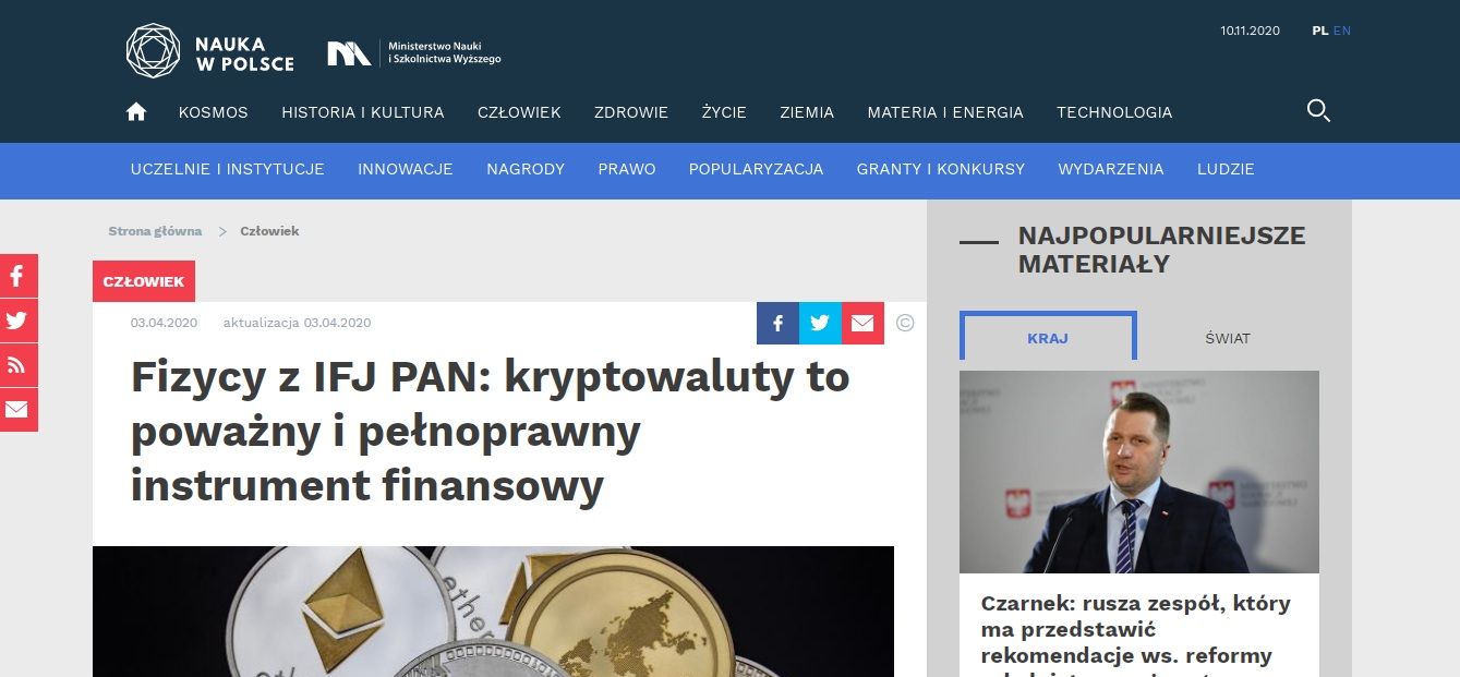 SponsoredKontynuacją poważnych badań naukowych nad kryptowalutami na rodzimym gruncie są tegoroczne analizy fizyków z Krakowa. Zespół kierowany przez prof. Stanisława Drożdża z Instytutu Fizyki Jądrowej PAN wykorzystał praktycznie nieograniczone dane płynące z blockchain i przeanalizował je za pomocą formalizmu macierzy korelacji używanego w fizyce statystycznej. Celem było poszukiwanie wzorców i wykazanie podobieństw do dojrzałych rynków typu Forex.