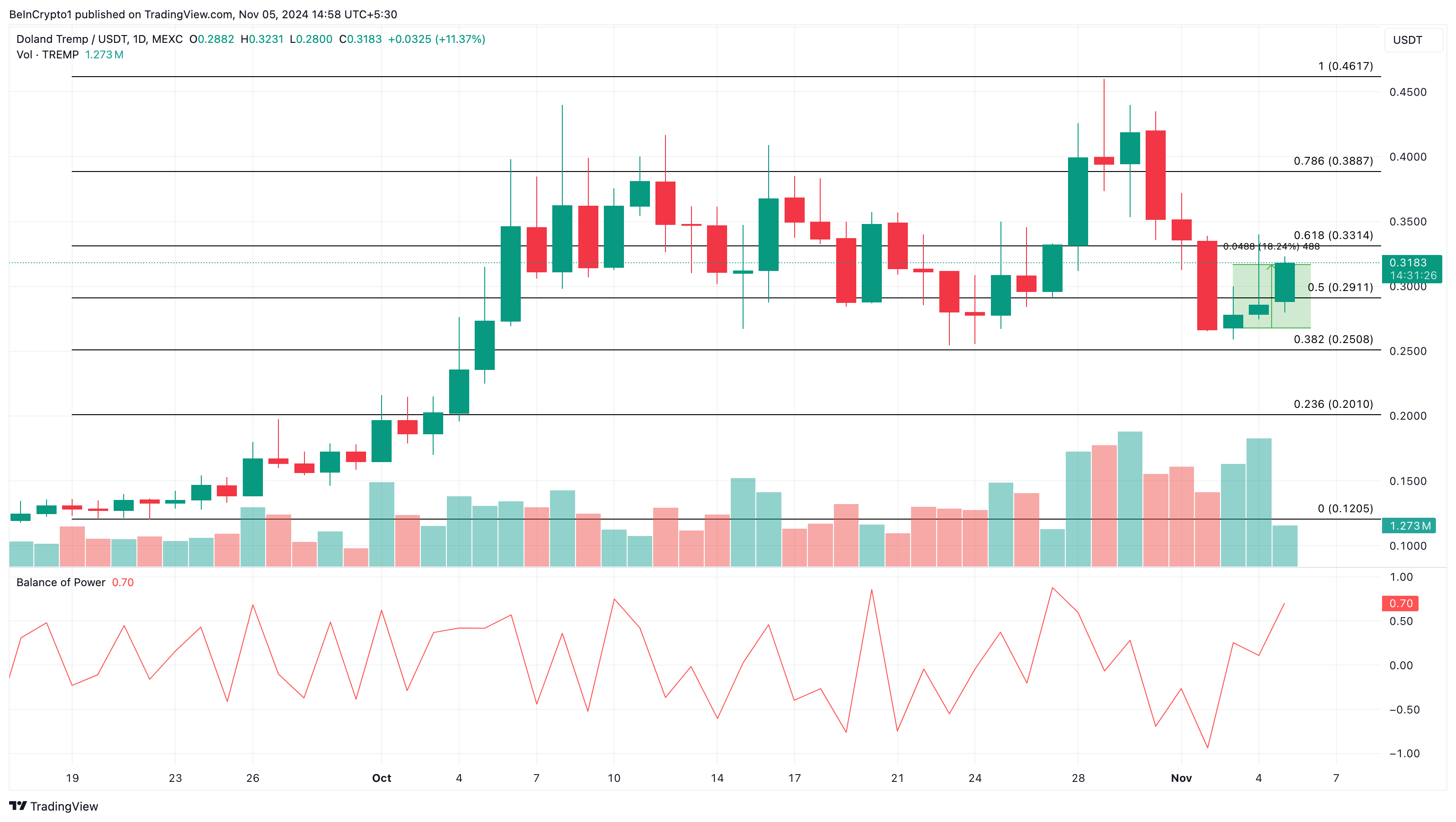 W przeciwieństwie do KAMA i TRUMP, Donald Tremp jest częścią nielicznych monet PoltiFi, które odnotowały znaczący wzrost w dniu wyborów w USA. Od niedzieli, 3 listopada, cena TREMP wzrosła o 20,22%.