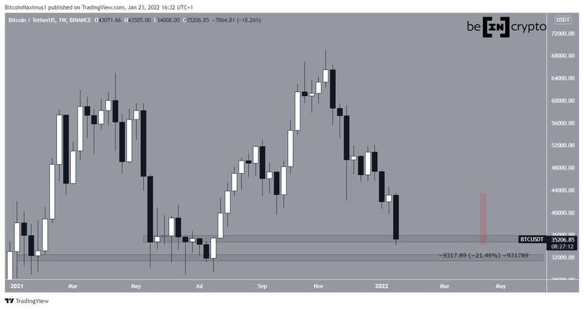 Dokładne poziomy wsparcia nie są jasne ze względu na obecność licznych knotów. Jednak dwa najbardziej prawdopodobne obszary wsparcia wydają się znajdować na poziomach 35 200 i 32 000 USD.