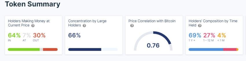 Według badań przeprowadzonych przez IntoTheBlock, 64% wszystkich posiadaczy Dogecoin notuje zyski. 7% jest na progu rentowności. Reszta posiadaczy traci. Ponadto 69% hodlerów Dogecoina to inwestorzy długoterminowi, którzy trzymają monetę przez ponad rok.