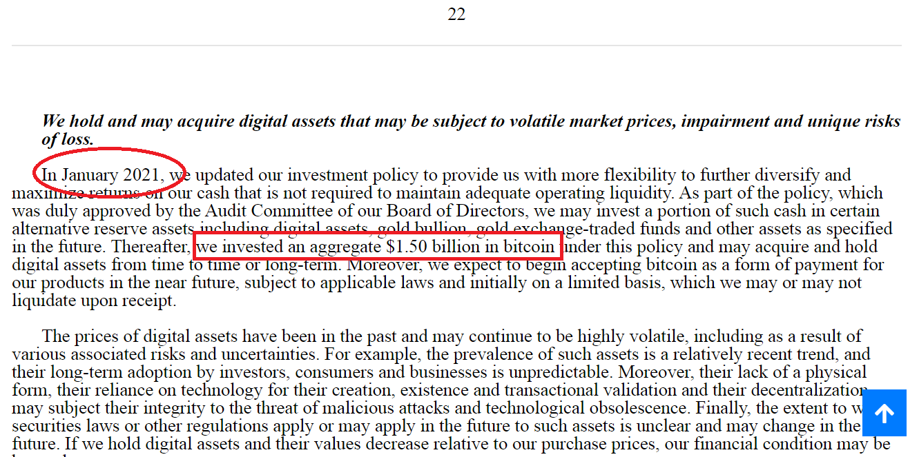 Jak się jednak okazuje to wcale nie zakup firmy Elona Muska był przyczyną wczorajszego impulsu, a sama informacja o jego dokonaniu. Po dokładniejszym przeczytaniu oświadczenia Tesli dla SEC czytamy, że zakupy zostały dokonane w styczniu 2021.