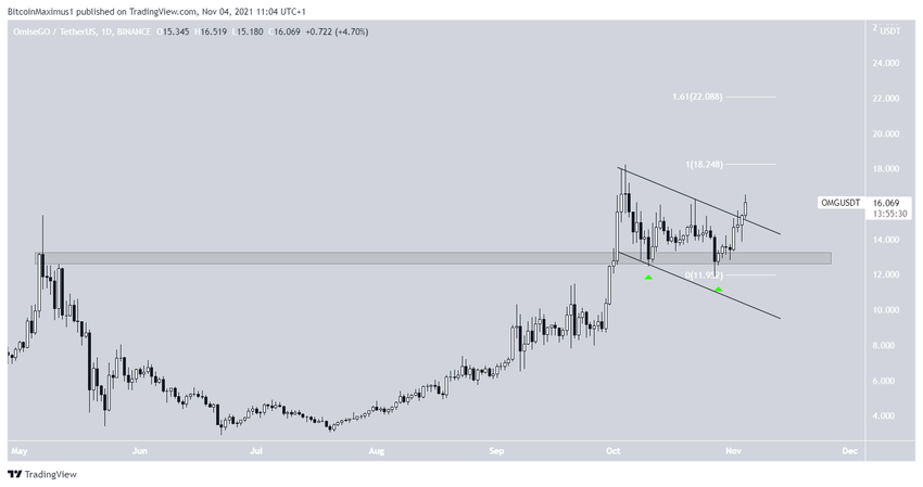 OMG zbliża się obecnie do ATH na poziomie 18,25 USD. Jeśli uda się go przekroczyć, następny opór będzie na poziomie 22 USD.