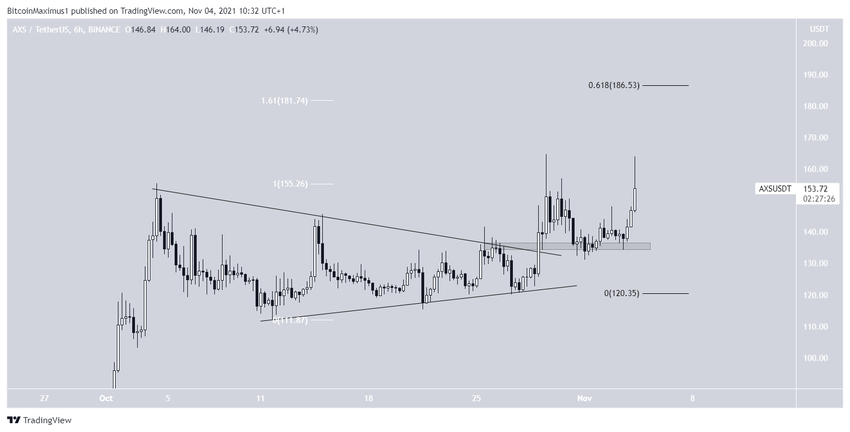AXS rośnie od 29 października, kiedy to wybił się z trójkąta symetrycznego. Następnego dnia osiągnął ATH na poziomie 164,58 USD.