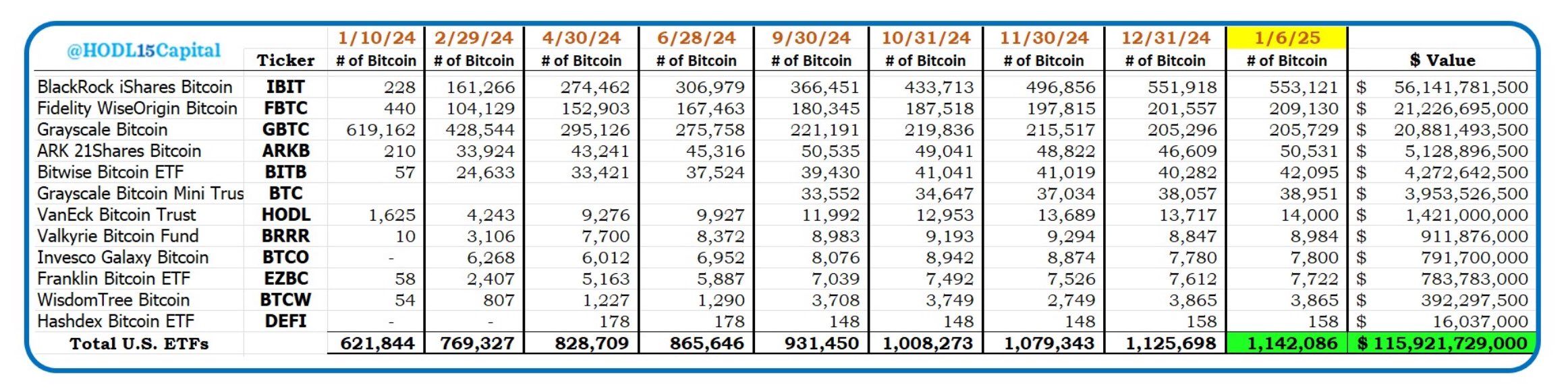 Od czasu pierwszego zatwierdzenia ETF na Bitcoin, wszyscy 12 emitenci stali się jednymi z największych wielorybów w branży. W październiku zakupili pięć razy więcej BTC niż światowa produkcja górnicza, a ta liczba wzrosła do ponad 20 razy.