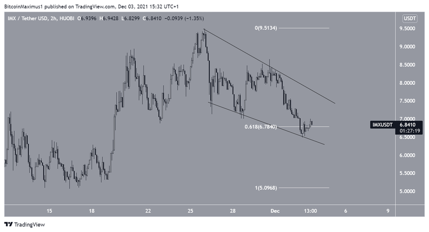 2 grudnia token odbił się od linii wsparcia klina, która zbiegła się z obszarem wsparcia zniesienia 0,618 Fib. Konfluencja poziomów wsparcia wzmocniła ważność odbicia.