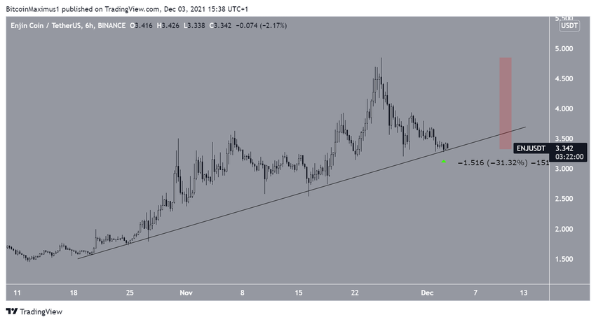 ENJ spada od 25 listopada, kiedy to osiągnął nowe ATH 4,84 USD. Do tej pory spadł o 31%.
