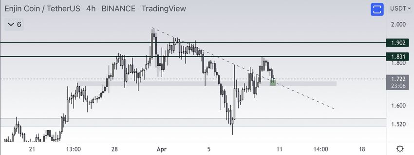 Trader kryptowalutowy @eliz883 opublikował na Twitterze wykres Enjin Coin, stwierdzając, że może nastąpić potencjalny retest.