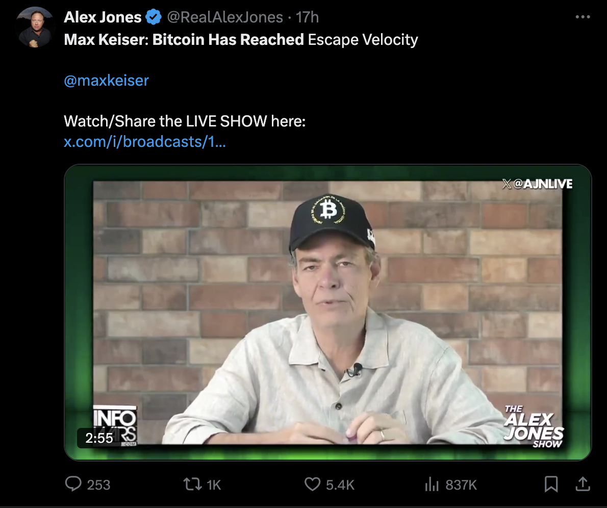 Max Keiser to znany inwestor i entuzjasta Bitcoina, który od lat promuje kryptowaluty jako alternatywę dla tradycyjnych systemów finansowych. Jest gospodarzem programów finansowych, w tym „Keiser Report”. Często krytykuje tam banki centralne i opowiada się za Bitcoinem jako “cyfrowym złotem.”