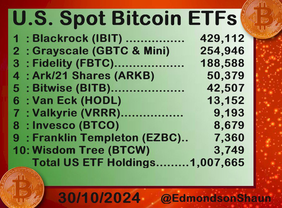 Amerykańskie ETF-y na Bitcoin posiadają łącznie 1 mln BTC, osiągając ten cel wcześniej niż przewidywano, dzięki dużym zakupom BlackRock. Jak tak dalej pójdzie, w tym tempie przewyższą zasoby Satoshi Nakamoto w ciągu dwóch tygodni.