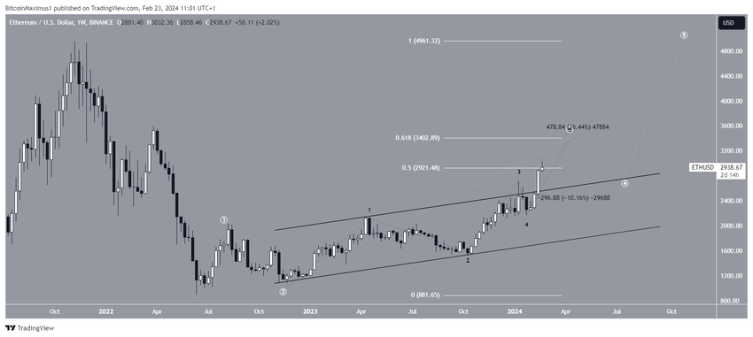 Pomimo byczej prognozy ceny ETH, brak zamknięcia powyżej poziomu oporu zniesienia 0,5 Fib przy 2920 USD może spowodować spadek o 10% do oporu kanału na poziomie 2630 USD.