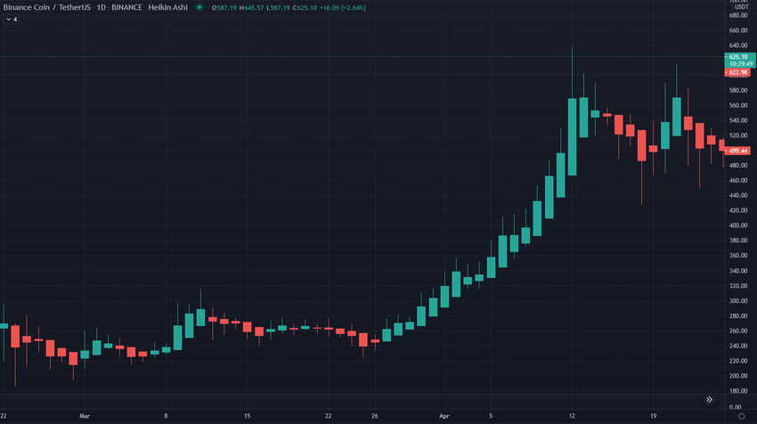Binance Coin (BNB) również odnotował nowy rekord, po raz pierwszy od prawie trzech tygodni. BNB zebrał 645 USD w sobotę rano. Trzecia co do wielkości kryptowaluta również cieszyła się ciągłą, tygodniową siłą.
