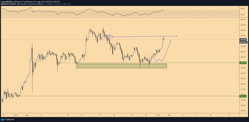 Kryptowalutowy trader @CryptoMichNL przedstawił wykres Ethereum, stwierdzając, że jeśli obecny poziom zostanie utrzymany, ETH może wzrosnąć aż do 500 USD.