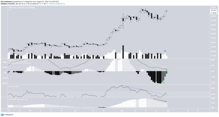 Dlatego w odniesieniu do tygodniowych interwałów cena ETH powinna nadal rosnąć.