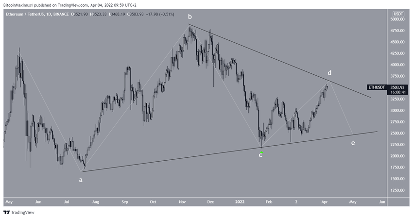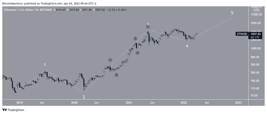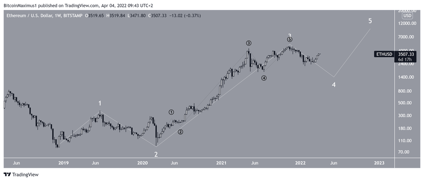 Drugi sugeruje, że ETH nadal znajduje się w fali czwartej i ruch wzrostowy zostanie wznowiony po kolejnym spadku.
