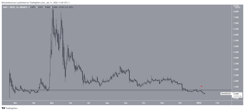 W dniu 5 stycznia, BAKE załamał się poniżej obszaru wsparcia przy 1,20 USD i potwierdził go jako opór (czerwona ikona).