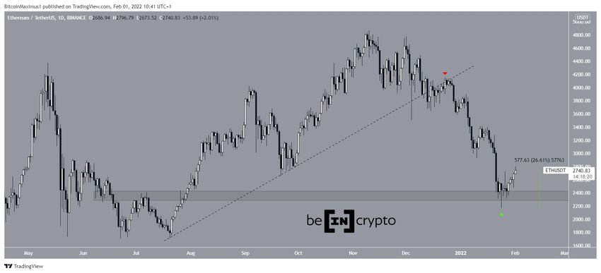 Ethereum (ETH) porusza się w górę od czasu odbicia od wsparcia na poziomie 2350 USD w dniu 24 stycznia. Jednak wciąż nie można potwierdzić, że rozpoczęło się bycze odwrócenie trendu.