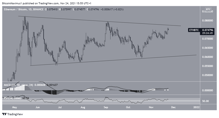 Podczas gdy para Ethereum (ETH) do USD ma trudności z utrzymaniem się powyżej wsparcia, para ETH/BTC wykazuje silne oznaki zbliżającego się wybicia.