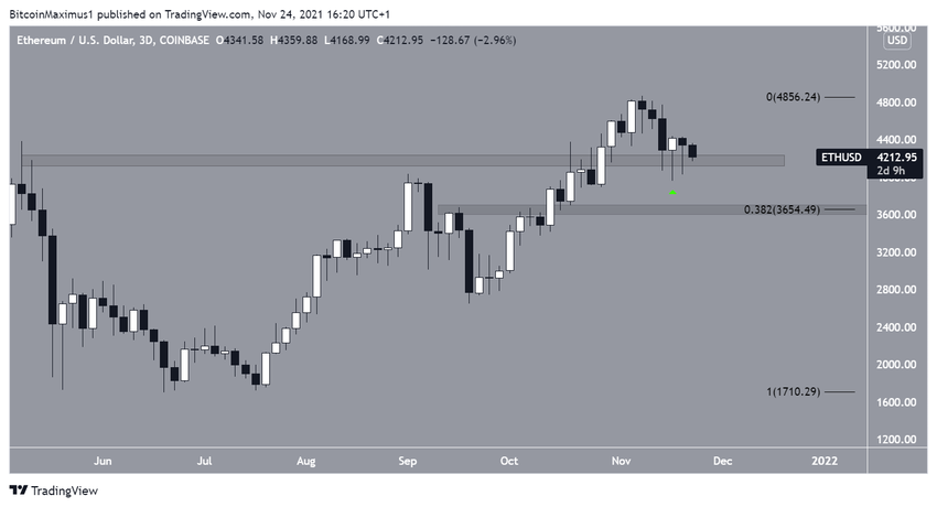 Ethereum spada od czasu osiągnięcia rekordu wszech czasów (ATH) na poziomie 4867 USD w dniu 9 listopada. Spadek doprowadził do dołka na poziomie 3960 USD w dniu 18 listopada, po czym token odbił się od dna. Utworzył długi dolny knot (zielona ikona), który jest uważany za oznakę presji zakupowej.