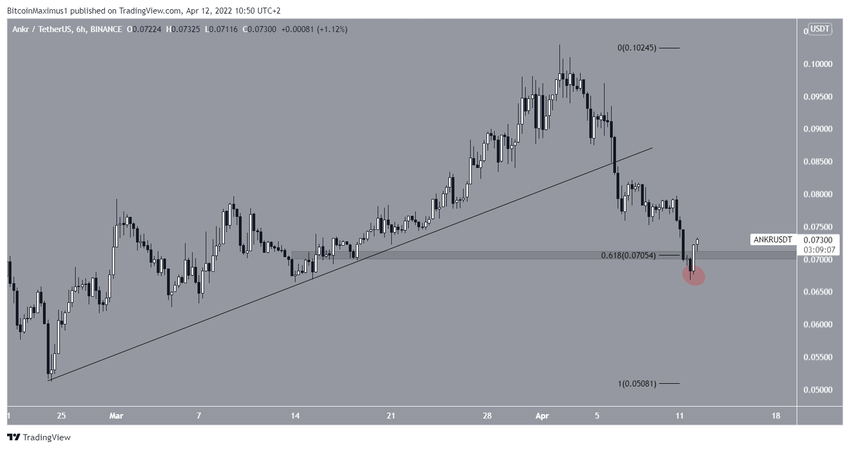 Po odbiciu się od niej, ANKR odzyskał poziom wsparcia przy zniesieniu 0,618 Fib na poziomie 0,07 USD. Jeśli ten obszar się utrzyma, będzie to oznaczało byczy rozwój sytuacji.