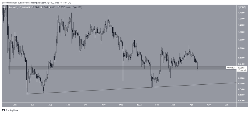 Podobnie jak BTC i Ethereum, XRP spada od 28 marca. Ruch w dół doprowadził jak dotąd do dołka na poziomie 0,68 USD w dniu 11 kwietnia.