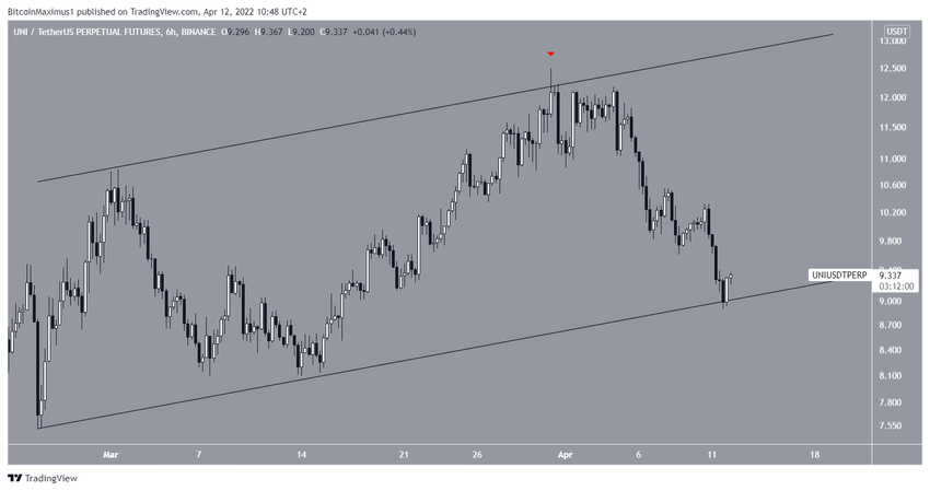 Od 24 lutego UNI wzrasta wewnątrz wznoszącego się kanału równoległego. W dniu 31 marca został odrzucony przez linię oporu kanału (czerwona ikona) i od tego czasu spada.