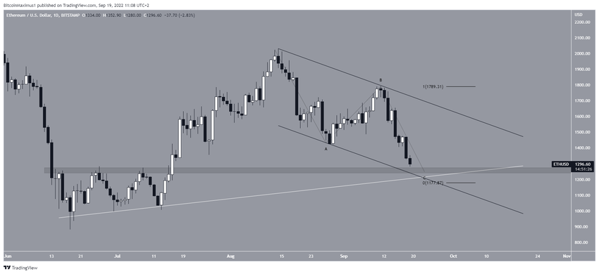 Ethereum spada od osiągnięcia rekordu wszech czasów (ATH) na poziomie 4868 USD w listopadzie 2021 r. Trend spadkowy doprowadził do długoterminowego dołka na 880 USD w czerwcu 2022 roku. To pozornie spowodowało załamanie z obszaru horyzontalnego wsparcia 1300 USD (czerwone koło).